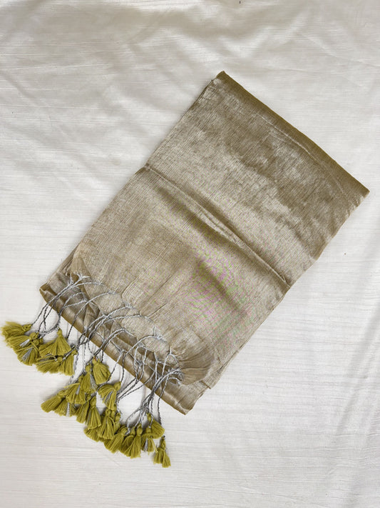 Beige Plain Khadi Tissue Saree with Stitched Blouse