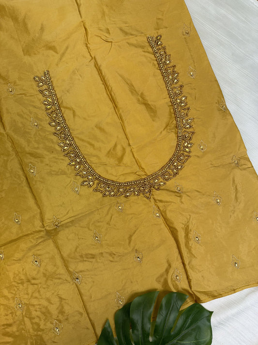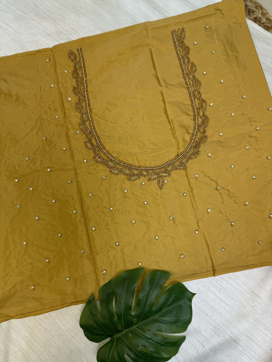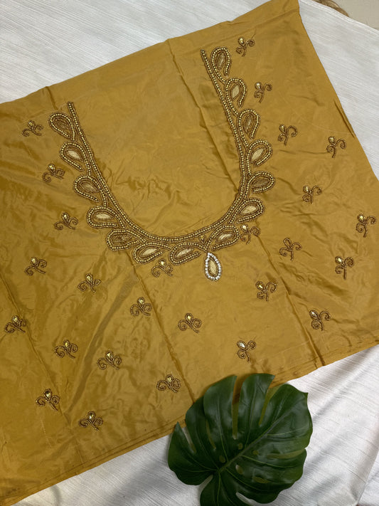 Golden Caramel Plain Saree With Ready To Wear Blouse.