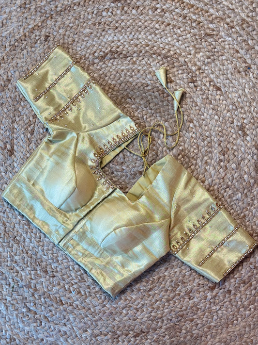 Golden Lavendar Plain Tissue Saree with Work Blouse Combo