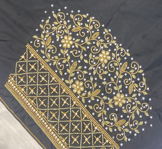 Biege Plain Khadi Tissue Saree with Stitched Blouse