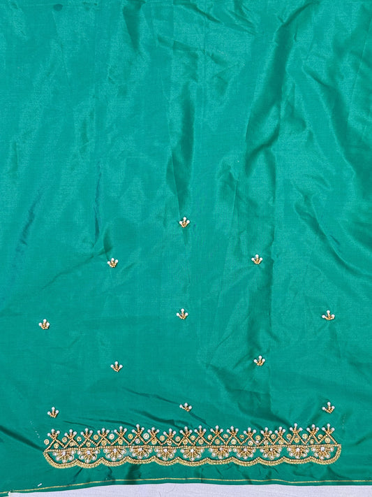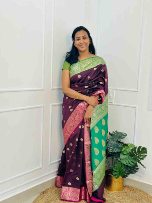 Green Banarasi Silk Saree with Pink & Green Ganga Jamuna Border