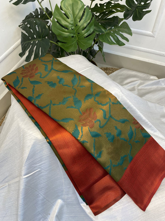 Green Red Poly Silk Saree