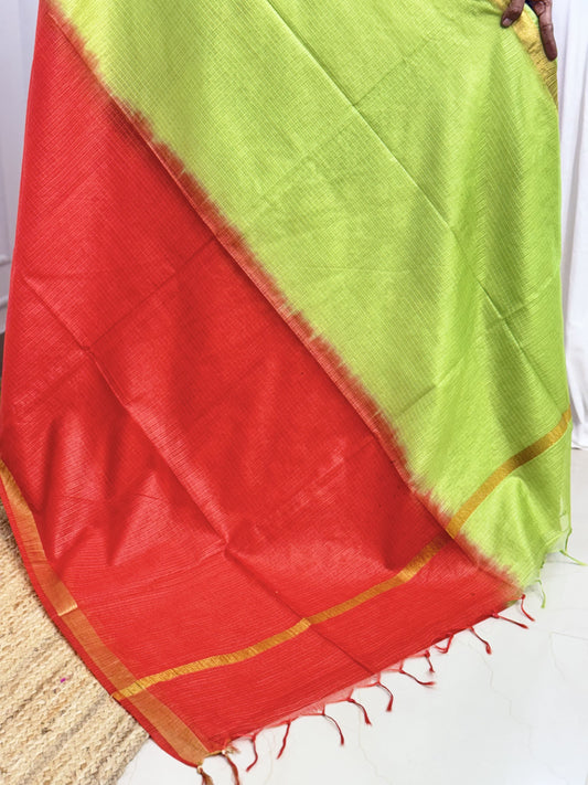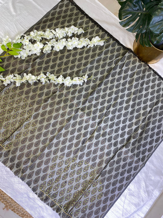 Greenish Gold Banarasi Semi Silk Saree with Work Blouse Combo