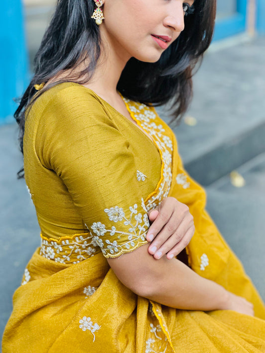 Mustad Green Premium Semi Silk Saree / Get 1 Free Work Blouse