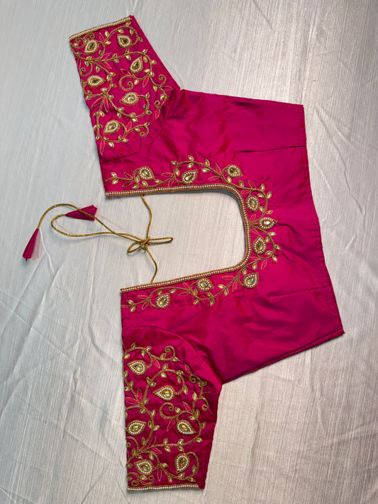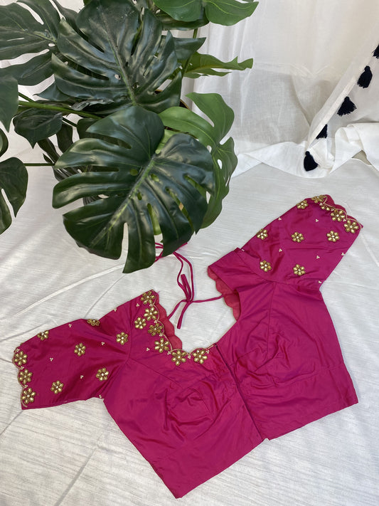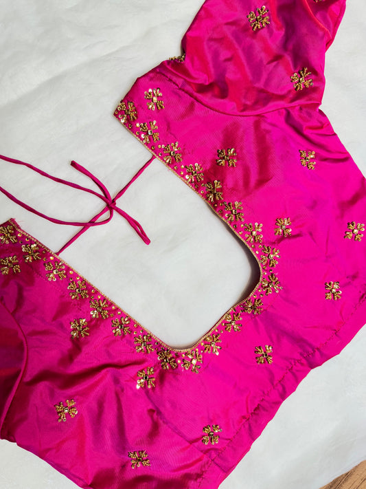 Pink Semi Kathan Saree With Stitched Blouse Combo