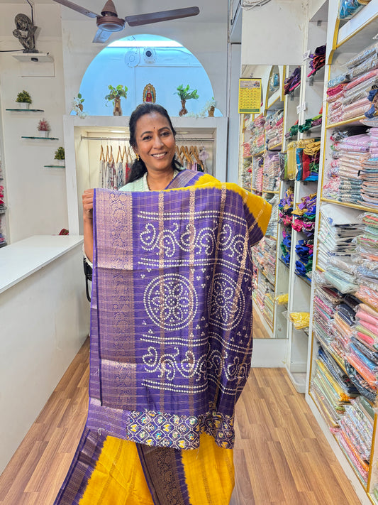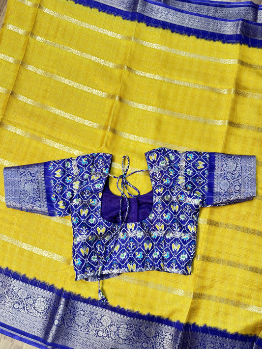 Yellow with Royal Blue Mashmallo Saree With Stitched Blouse