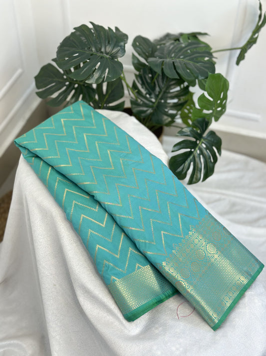 RamaGreen Semi Kathan Silk Saree with Work Blouse Combo