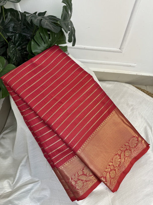 Red Semi Kathan Saree With Work Blouse