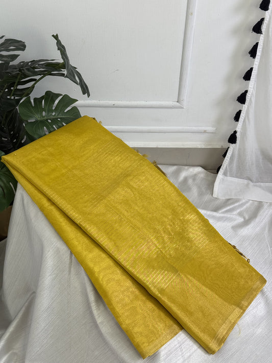Yellow Tissue Saree with Work Blouse Combo