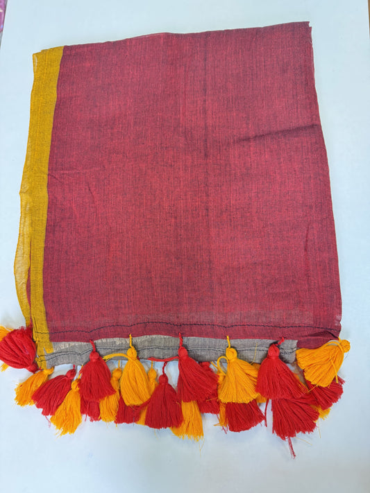 Maroon-Mustard-Grey Triple Shade Mul-Cotton Saree