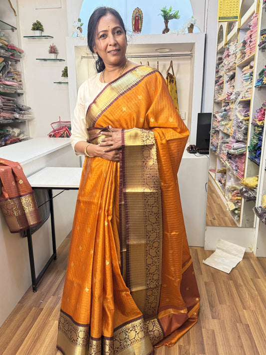 Rust Orange with Brown Banarasi Soft Silk Saree
