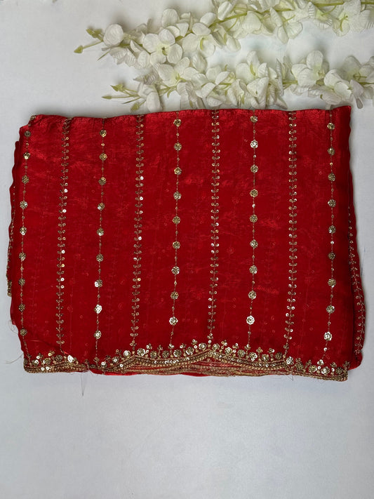 Red Space Silk Designer Saree