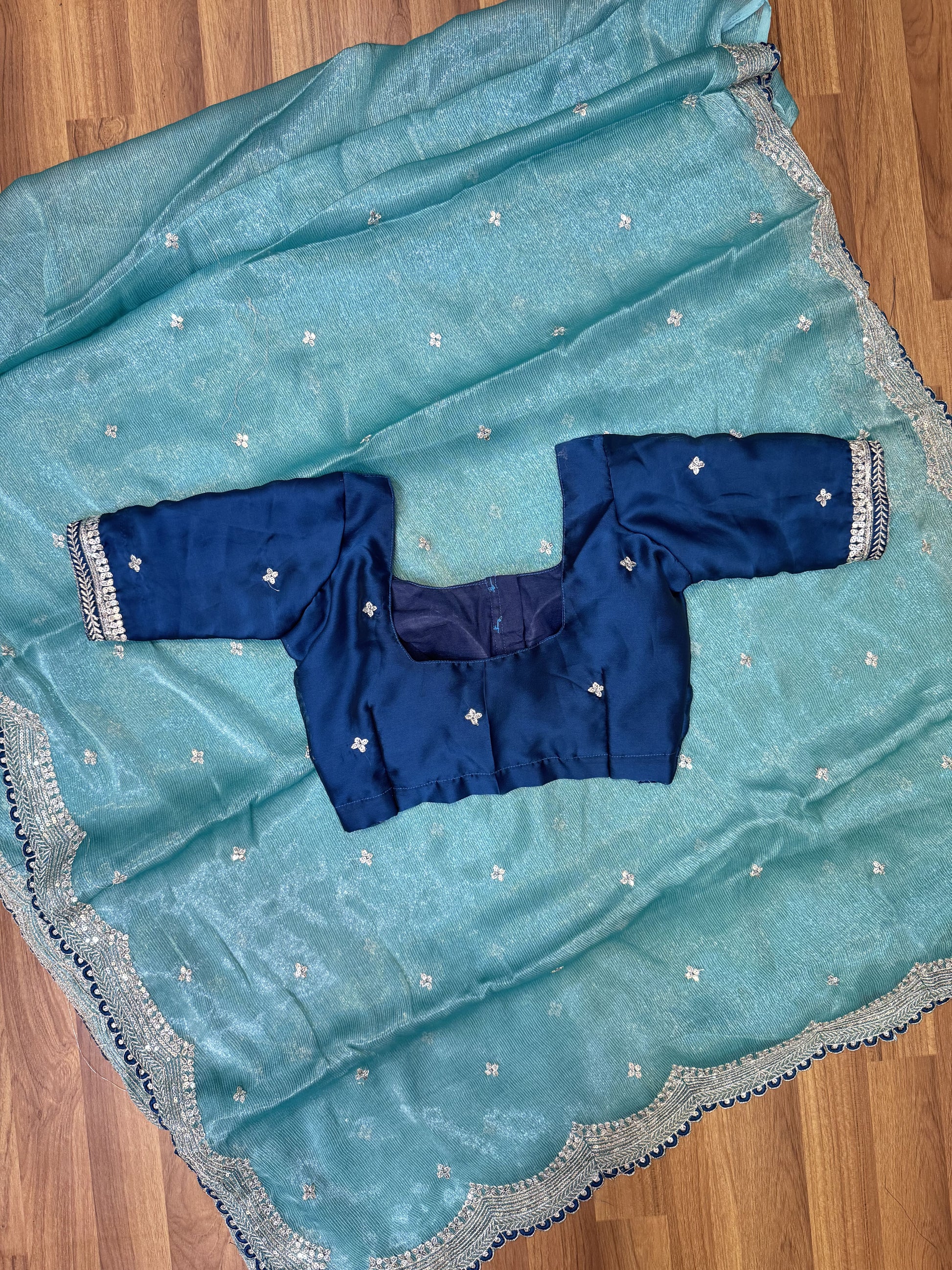 RamaGreen Designer Saree with Stitched Blouse Combo