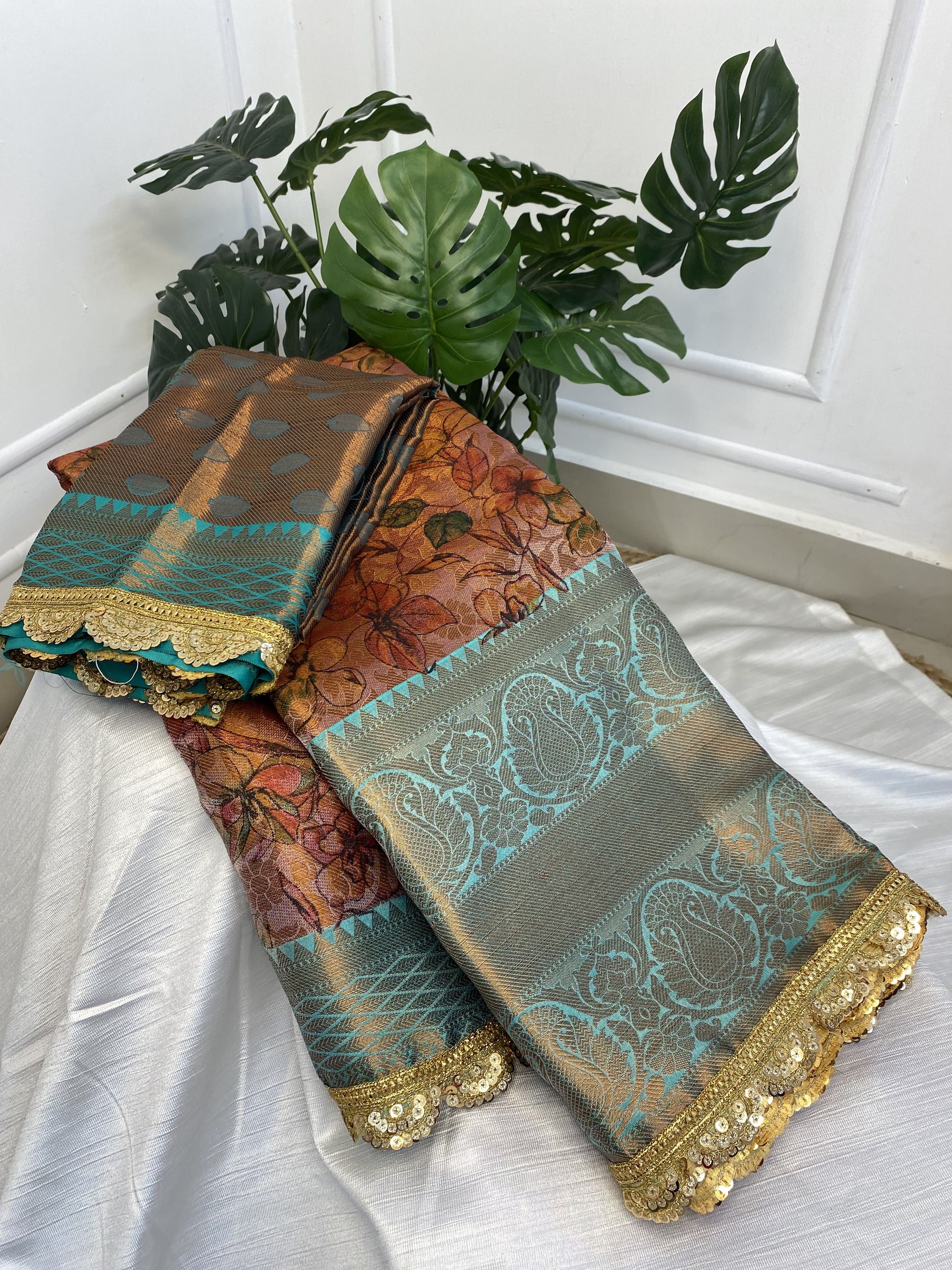 Brown Ramagreen Tissue Saree