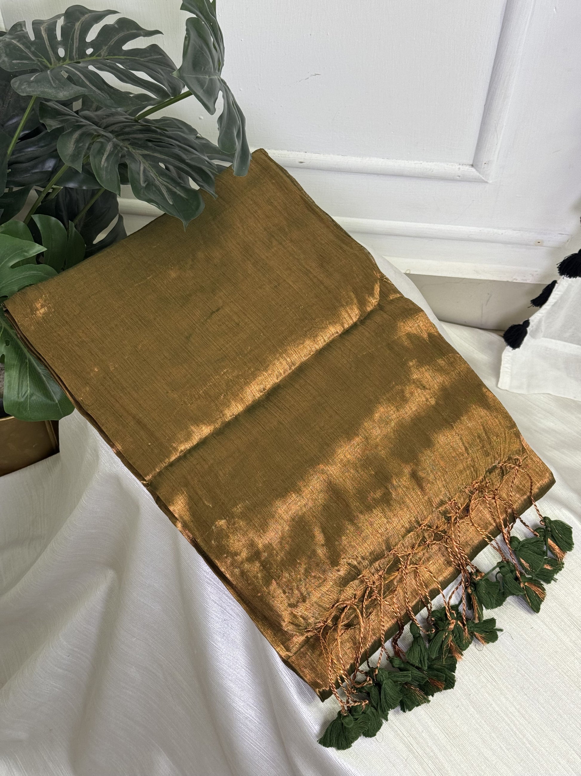 Copper Green Plain Tissue Saree