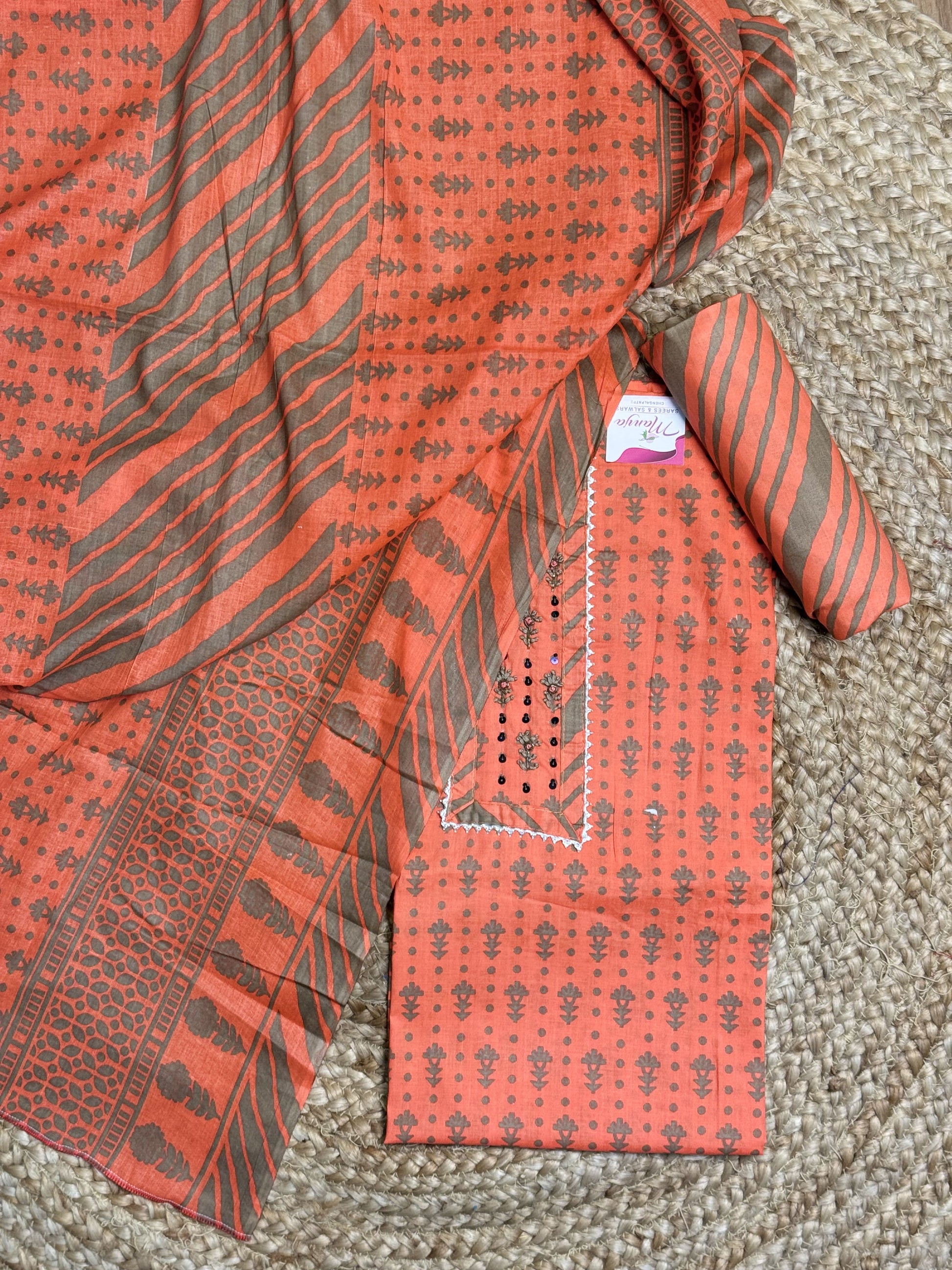 - The unstitched salwar suit is elevated with threadwork embroidery