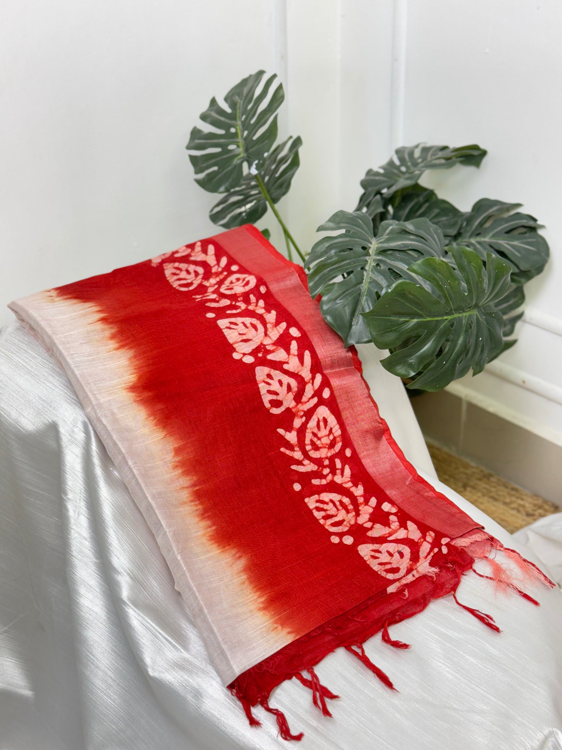 Half White Red Linen Saree .