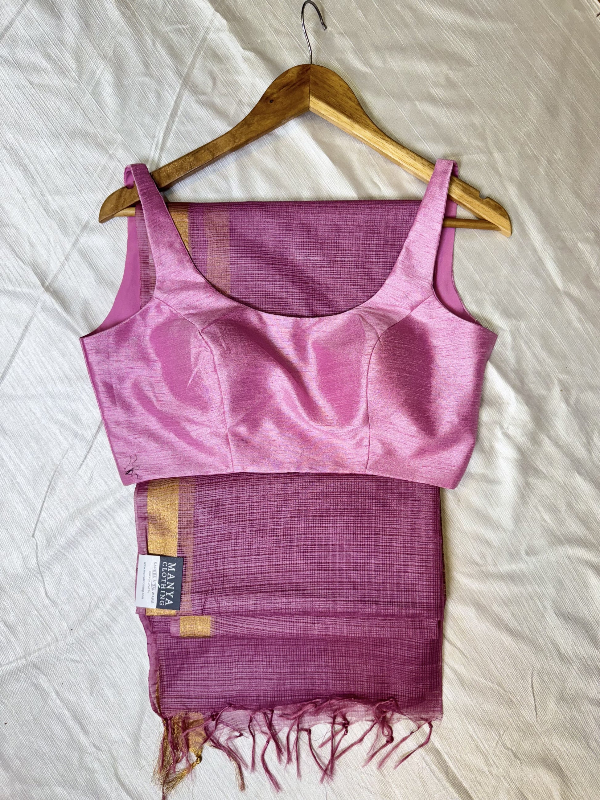 Light Pink Kota Cotton Saree With Sleeveless Blouse