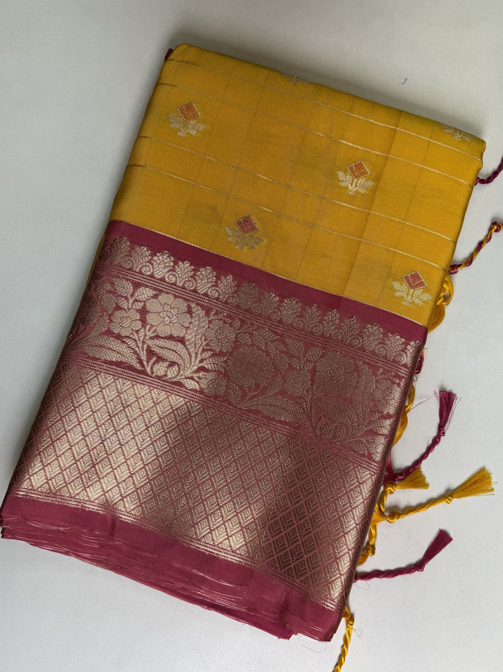 Yellow with Pink Semi Silk Saree