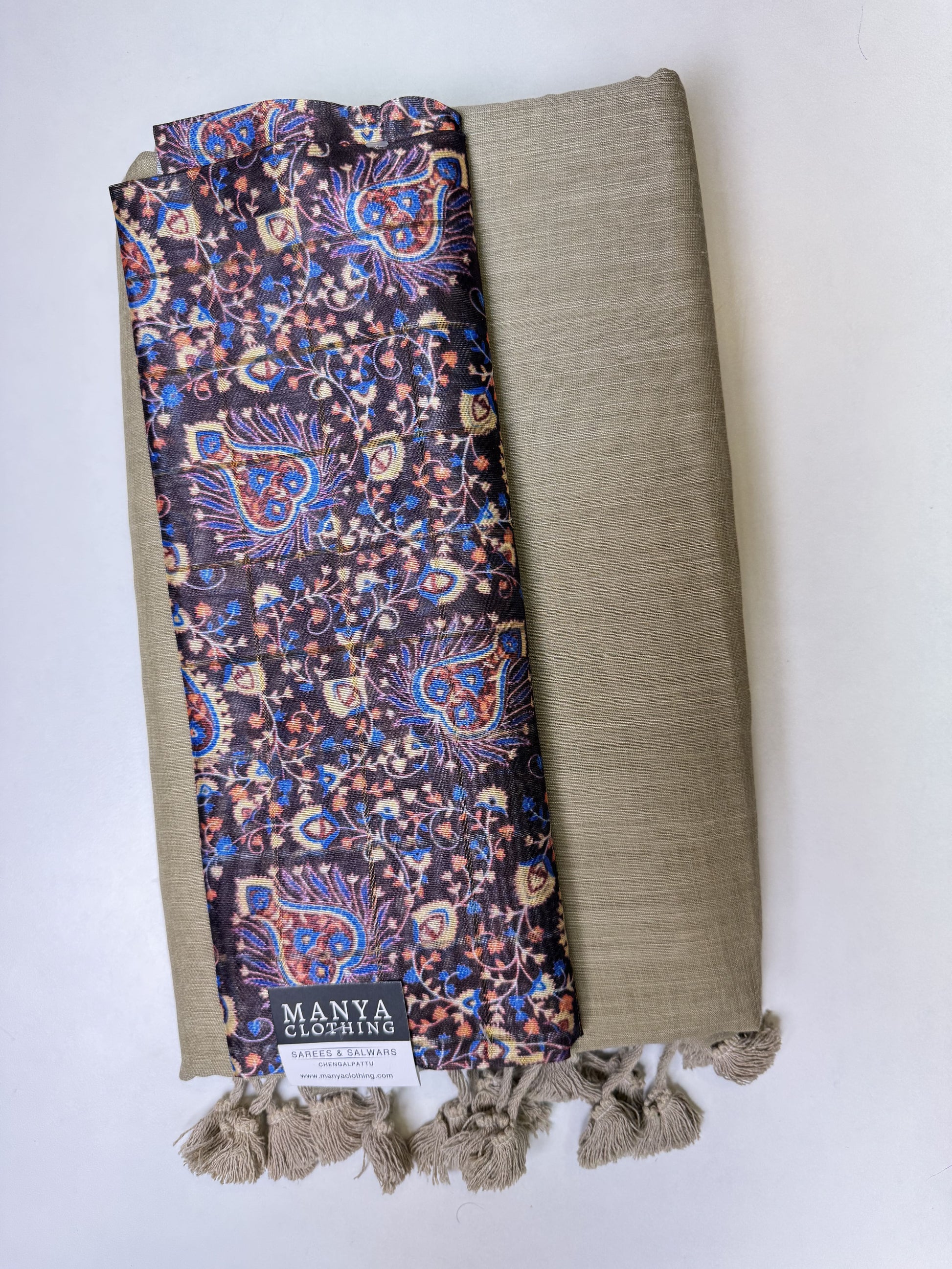 - Cotton Saree with Silver Zari Border & Contrast Blouse