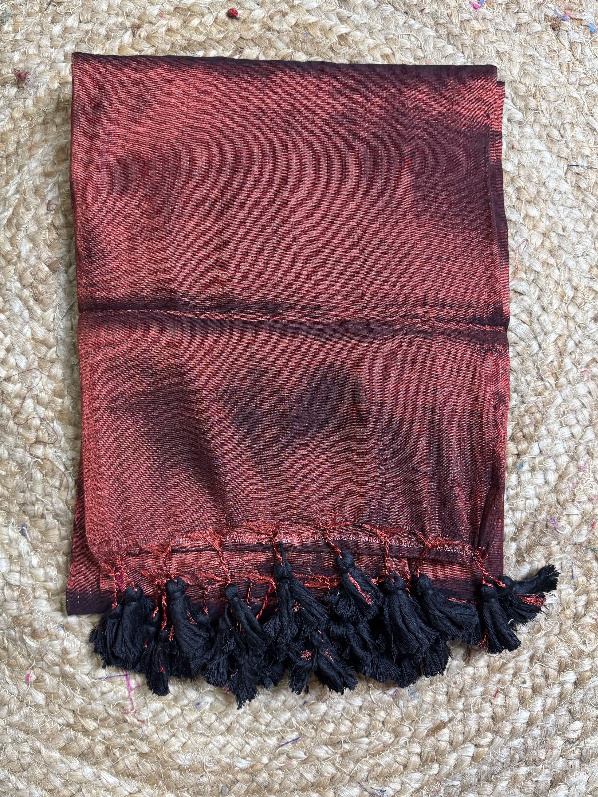 - Plain Tissue Fabric - Has Golden Zari details - Saree has a Matching Unstitched Blouse piece Note: Product color may slightly vary due to photographic lighting sources or your monitor settings.