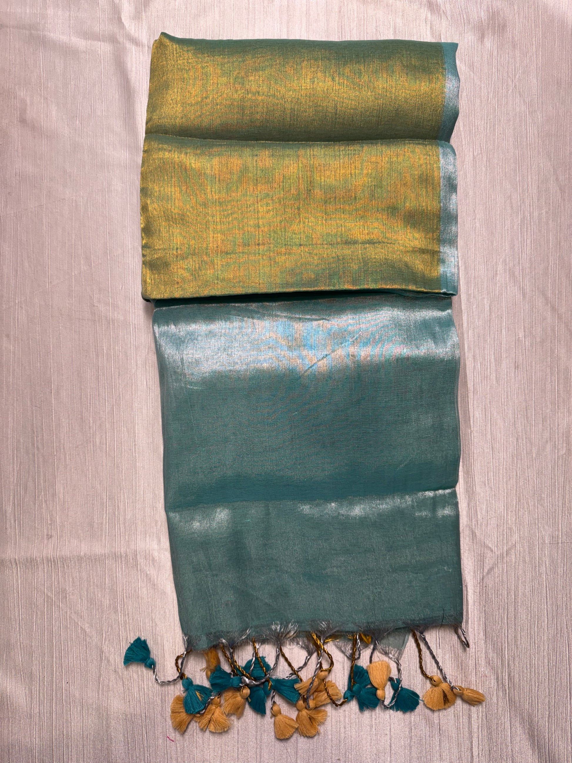 Rama Green & Sea Foam Green Plain Tissue Saree