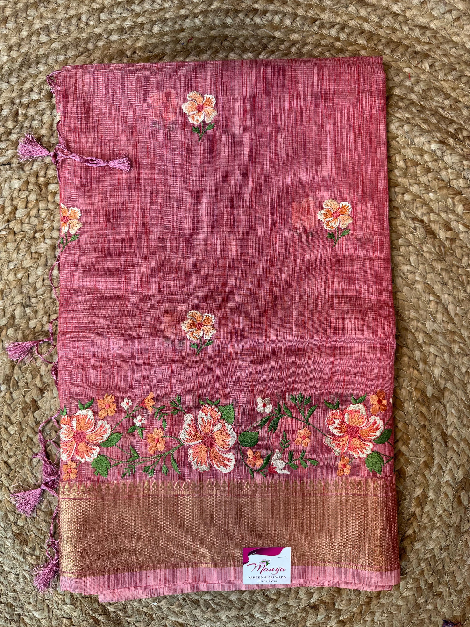 - Tissue Fabric - Has Golden Zari details - Saree has a Matching Unstitched Blouse piece Note: Product color may slightly vary due to photographic lighting sources or your monitor settings.