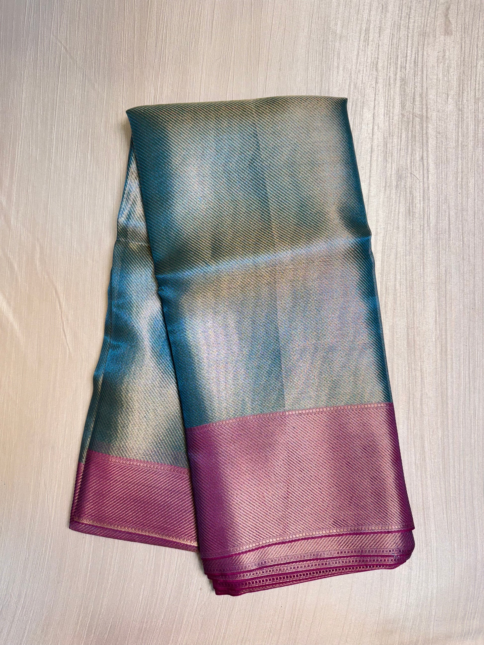 - Tissue Fabric - Has Golden Zari details - Saree has a Matching Unstitched Blouse piece Note: Product color may slightly vary due to photographic lighting sources or your monitor settings.
