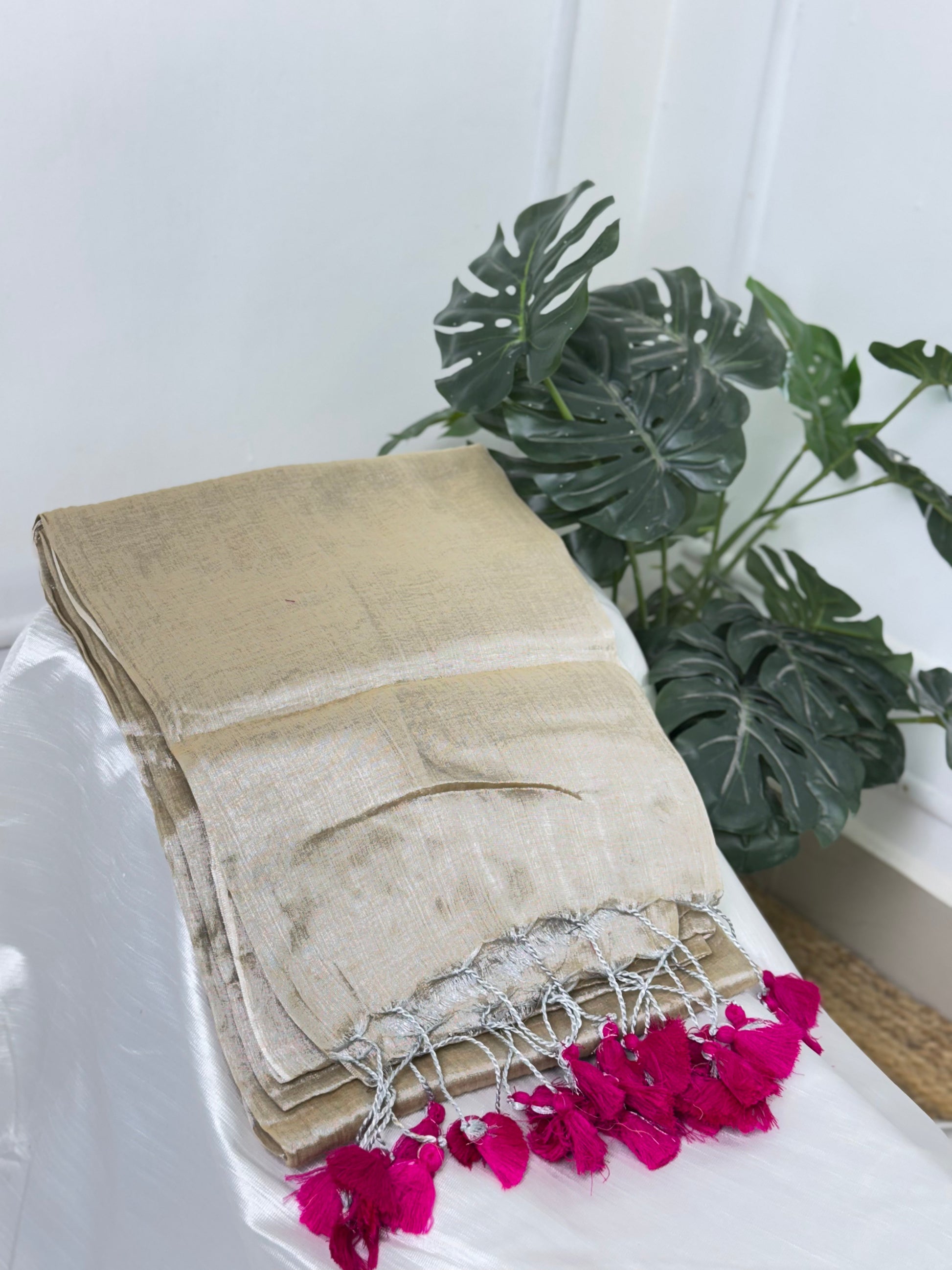 Khadi Tissue Fabric - Saree has a Matching Unstitched Blouse piece