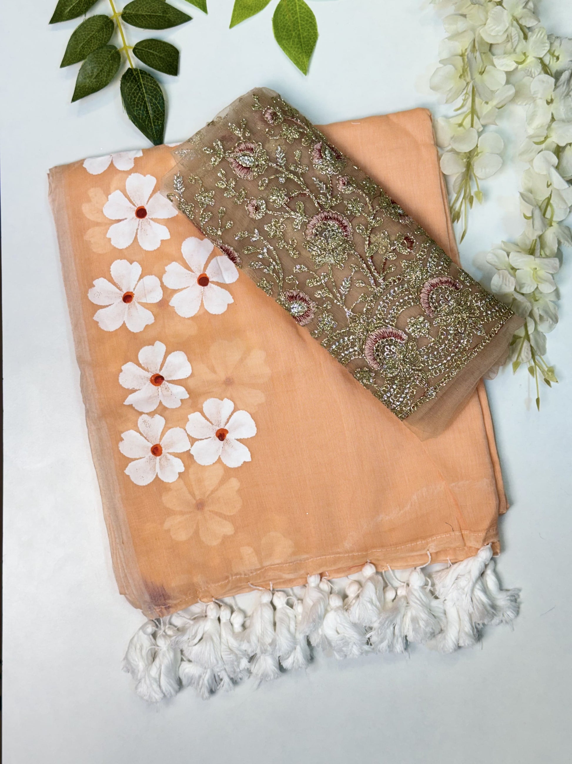 -Cotton Saree - Saree has a Matching Unstitched Blouse piece