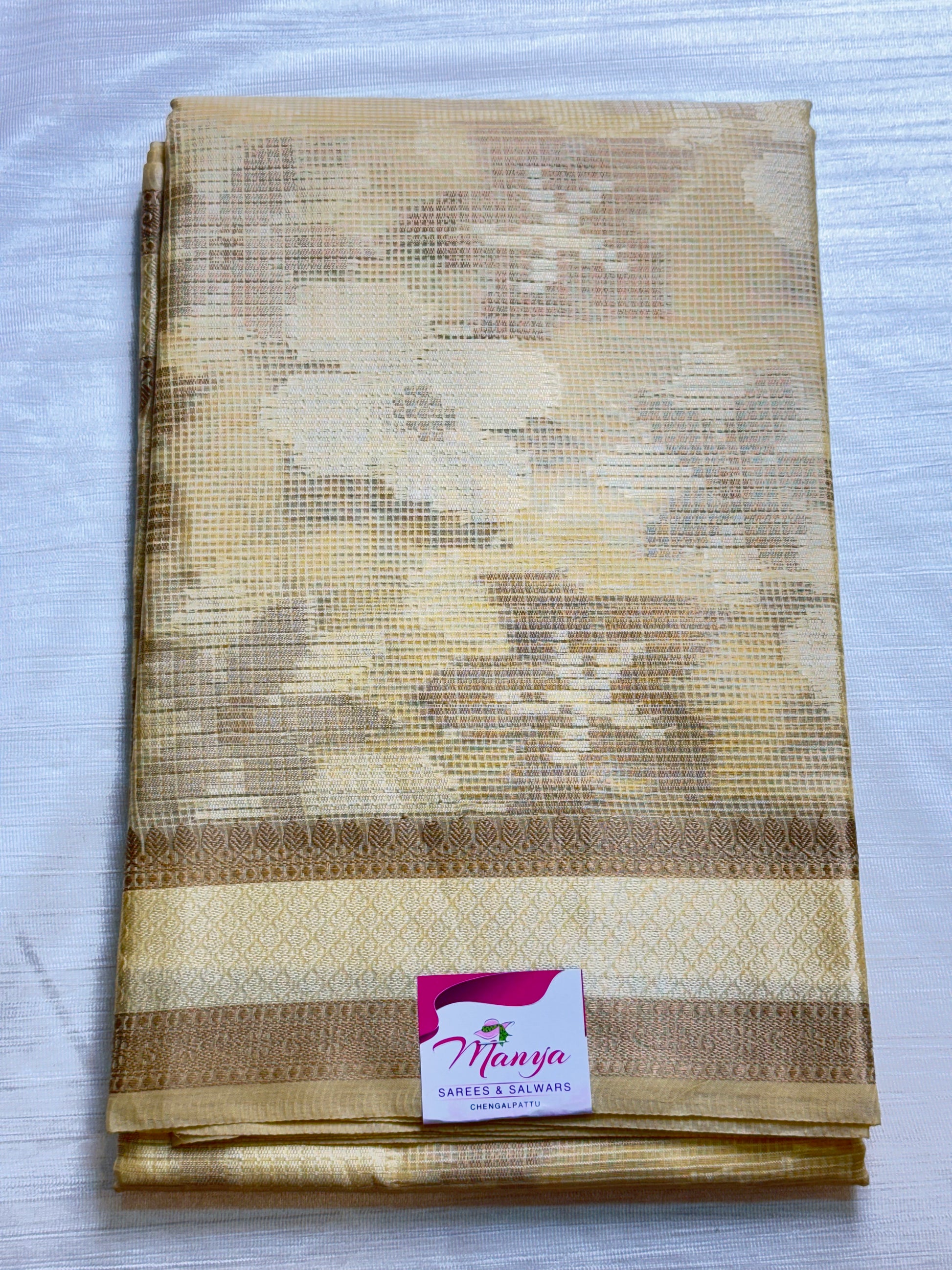 -Tissue Fabric - Has Golden Zari details - Saree has a Matching Unstitched Blouse piece Note: Product color may slightly vary due to photographic lighting sources or your monitor settings.